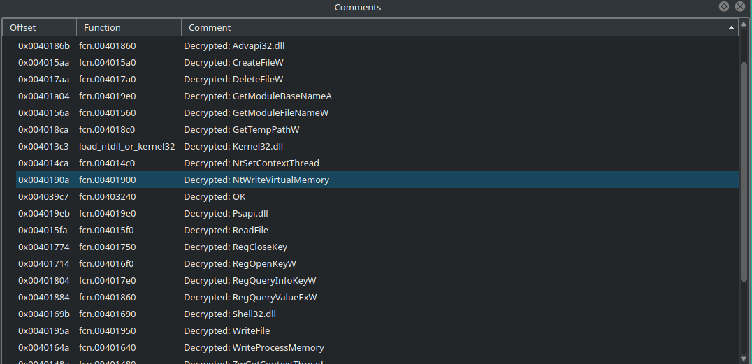 Awesome! We did it, we decrypted the encrypted strings and added inline comments to ease the analysis process. The final script can be found here.