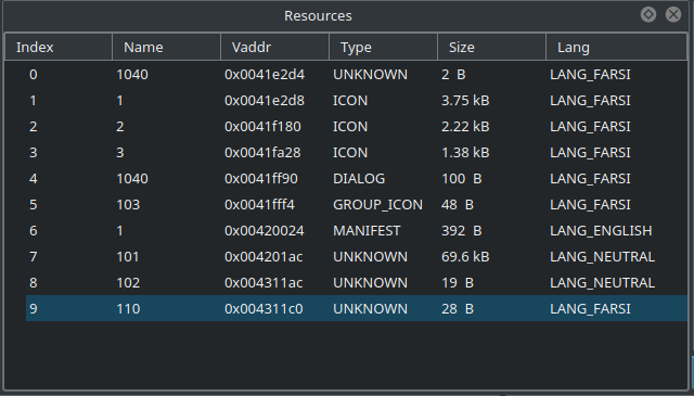 As you can see in the screenshot above, the size of the resource is 28 Bytes and its Lang is Farsi which might hint us about the threat actor behind Dropshot.