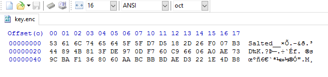 I opened the rar archive and found a file named ‘key.enc’ which contained “Salted_