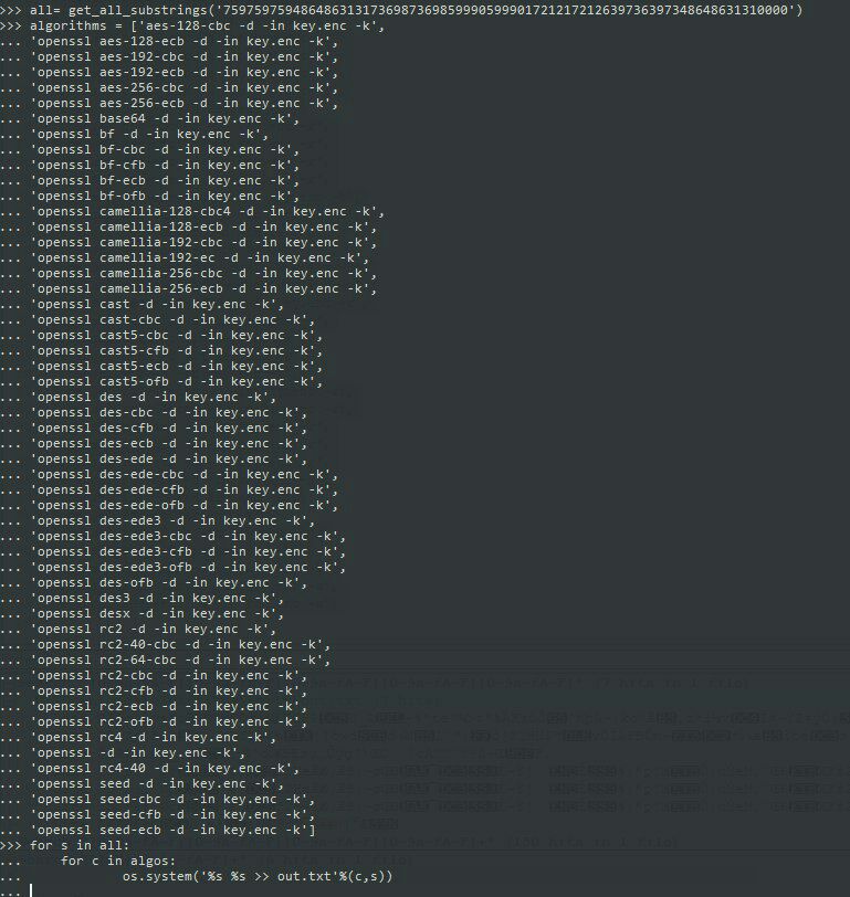 At the first, as the name says, I thought I found the key of some encryption and now I need to find the encrypted file and the cipher. But in a second thought I said to myself that ‘*.enc’ is usually for the encrypted files! So that file isn’t a key, it’s encrypted and we need to decrypt it. But what is the key and the cipher?